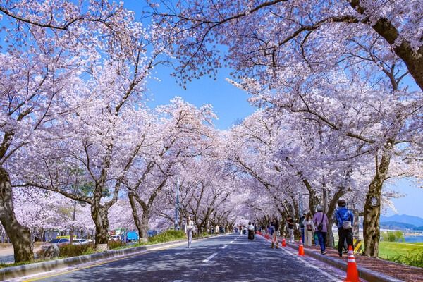 Day 1 : Jinhae Gunhangje: Korea's largest cherry blossom city, with 360,000 trees blanketing the entire town. Walk the 800m Gyeonghwa Station railway tunnel, cross the Yeojwacheon Romance Bridge, and take in panoramic views from Jehwangsan. Dinner: fresh Jinhae seafood.