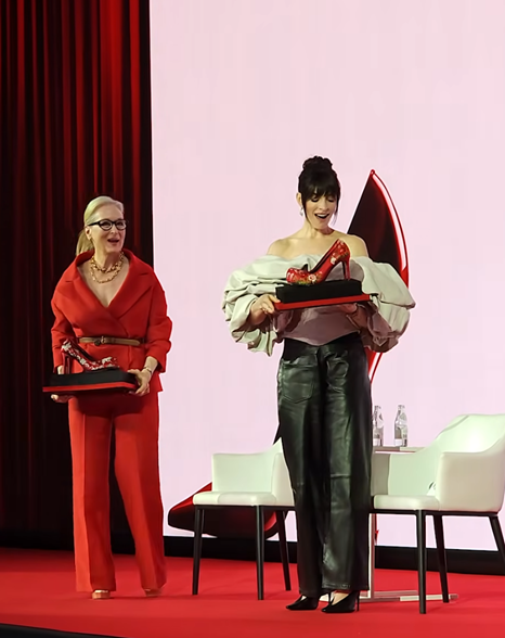 앤 해서웨이 & 메릴 스트립 영화 속 빨간 하이힐에 한국 전통 꽃자수를 접목한 '꽃신 하이힐' 증정 — 배우의 작품 정체성을 존중한 맞춤형 선물